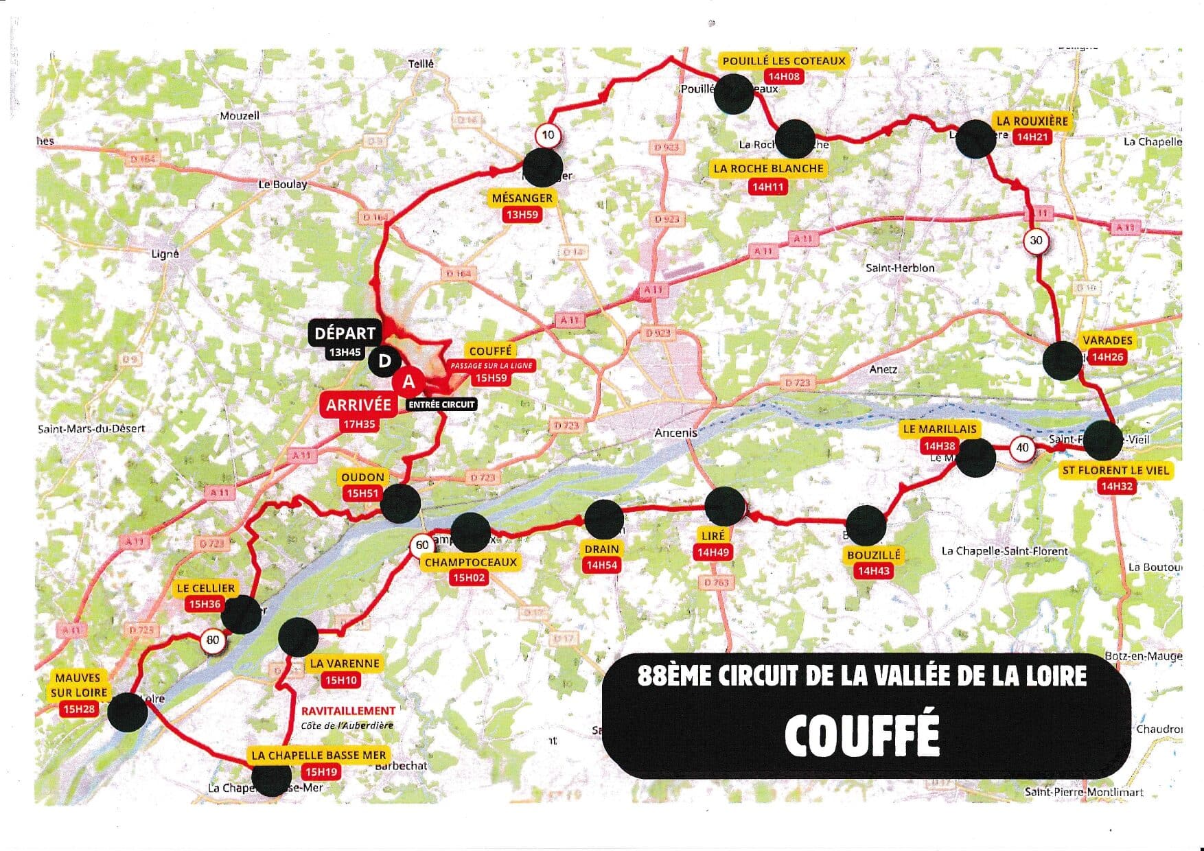 • Le Grand prix de la Ville de Couffé, le départ est programmé à 13 h 15 pour une arrivée vers 16 h.