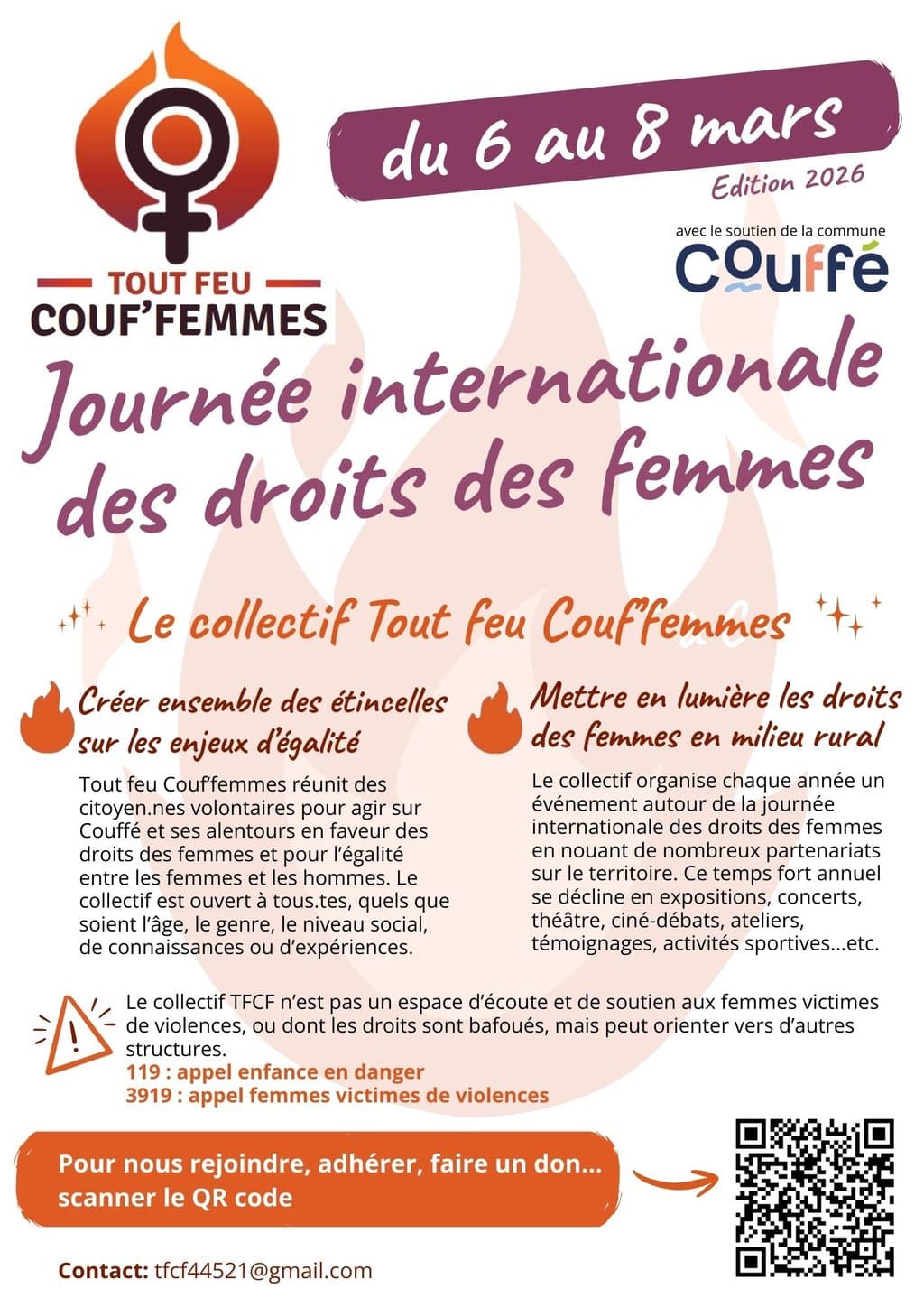 🔥 Les 6, 7 et 8 mars 2026, TFCF (Tout feu Couf’femmes, collectif féministe Coufféen) se mobilise pour la Journée internationale des droits des femmes !